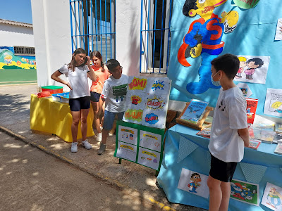 Cada curso de primaria preparó un stand sobre uno o varios temas. Por turnos, los alumnos del cole iban pasando por todos los stands y los encargados de los mismos les mostraban los libros que tenemos en la biblioteca referidos a dichos temas.